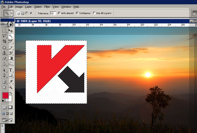 ๔. ดูที่ "ภาพที่ ๑. ภาพต้นฉบับอักษร" จะเห็น Layer ของกลุ่มอักษรชุดนี้อยู่