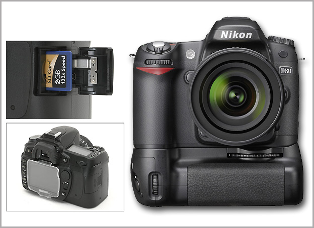 พลังงาน แบตเตอรี่ชาร์จ EN-EL3e Li-ion หนึ่งก้อน, มีอุปกรณ์เสริมแบตเตอรี่แพค MB-D80 ใส่แบตเตอรี่ Nikon EN-EL3e Li-ion ได้สองก้อน หรือแบตเตอรี่AA alkaline (LR6) 6 ก้อน, Ni-MH (HR6), lithium (FR6) หรือ nickel-manganese (ZR6) AA , EH-5 AC Adapter (อุปกรณ์เสริม)