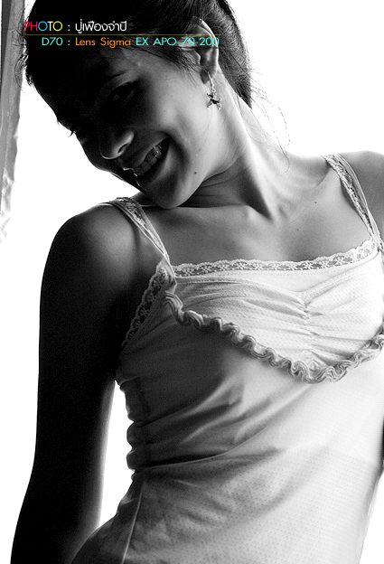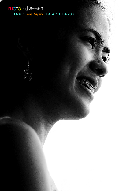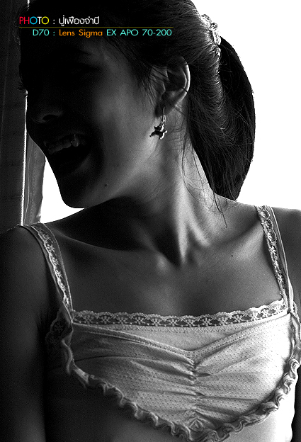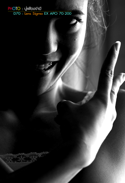 คำตอบที่ 1 พอดีกิ๊กสิวตรึม เลยทำภาพขาวดำมา แล้วใช้เลนส์ 70-200 หนักบรรลัย เอฟ 2.8 แล้วความเร็วชัตเตอร์ ยังต่ำอยู่เลยไม่คมสมใจ อย่างนี้ต้อง 85 หรือ 50 ก็แจ่มแน่