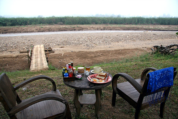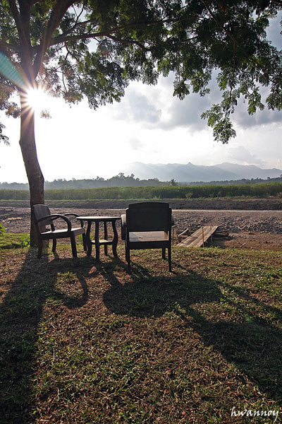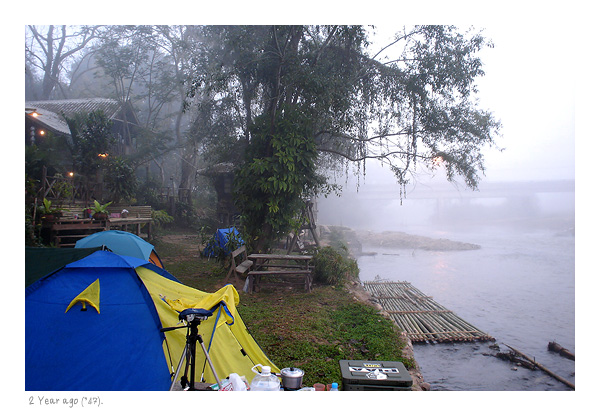 คำตอบที่ 3 ยามเช้า ABF เสริฟมาพร้อมกับหมอกจางๆ ทอดสายตาออกไปก็พบว่า แม่น้ำเปลี่ยนไป เพราะถูกน้ำป่าถล่มเมื่อฝนที่แล้ว ลำน้ำตื้นเขินไปด้วยกรวดทราย ต้องเอารถตักมาขุดขึ้นมากองไว้ข้างๆ ทำให้ความกว้างของแม่น้ำเหลือเพียงครึ่งเดียว