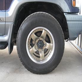 เป็นขนาดสิบแปดนิ้ว ยางอเมริกา BF ปี 2003 เก่าแล้วครับ ไม่กล้าวิ่งเร็ว อย่างมาก 120 กม/ชม. ปลอดภัยกับคนที่เรารักและรักเรา