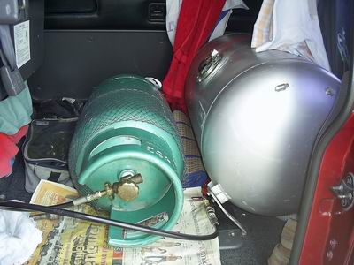 ตอนนี้ได้ทำบายพาส พ่วงกับถังแก๊สที่อยู่ในรถเรียบร้อยแล้ว โดยจะพกเอาถังแก๊สบ้านไปด้วยเวลาเดินทางไกล