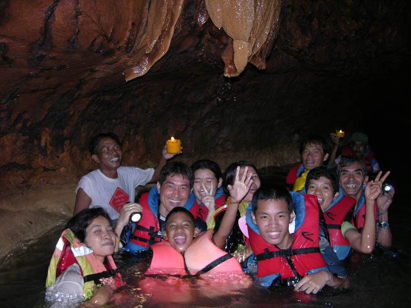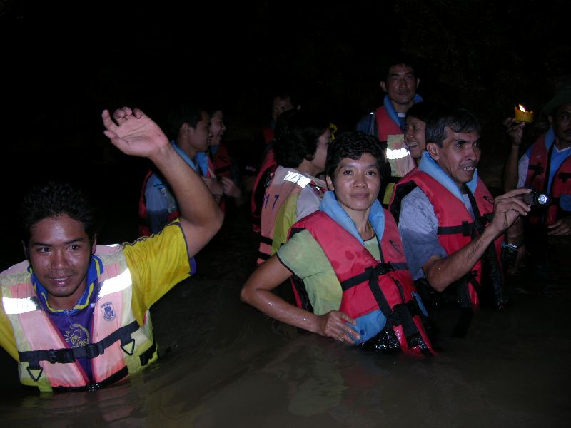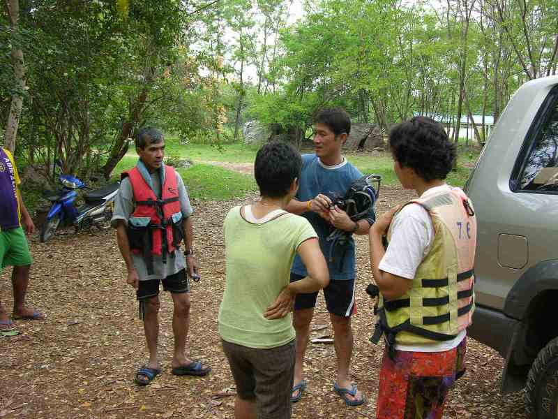 เดินทางถึงปากถ้ำประมาณเที่ยง หลังจากหาอาหารรองท้อง ก็เริ่มเตรียมอุปกรณ์ ซึ่งควรจะประกอบด้วยชูชีพ รองเท้าที่ลุยน้ำได้ และไฟฉาย