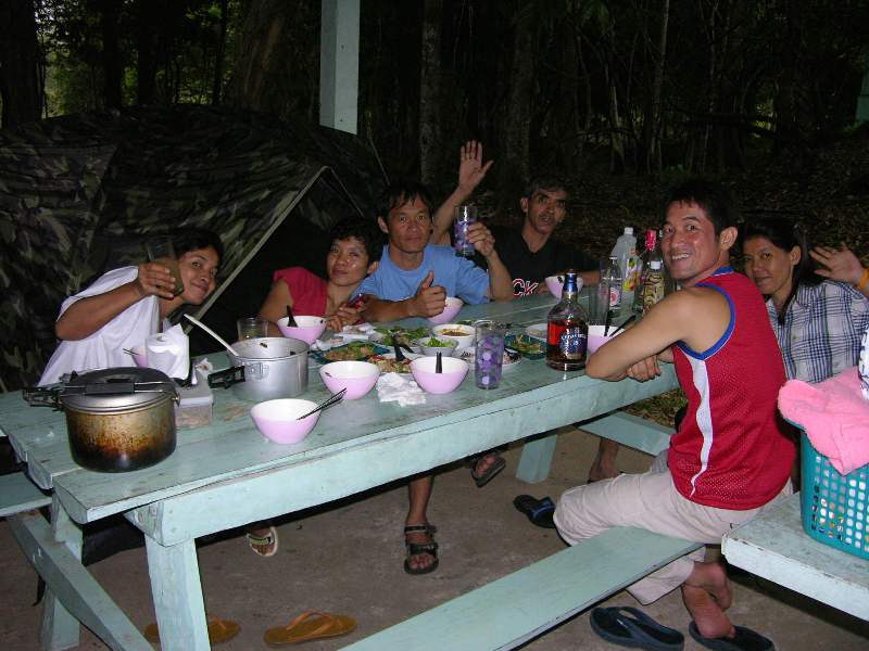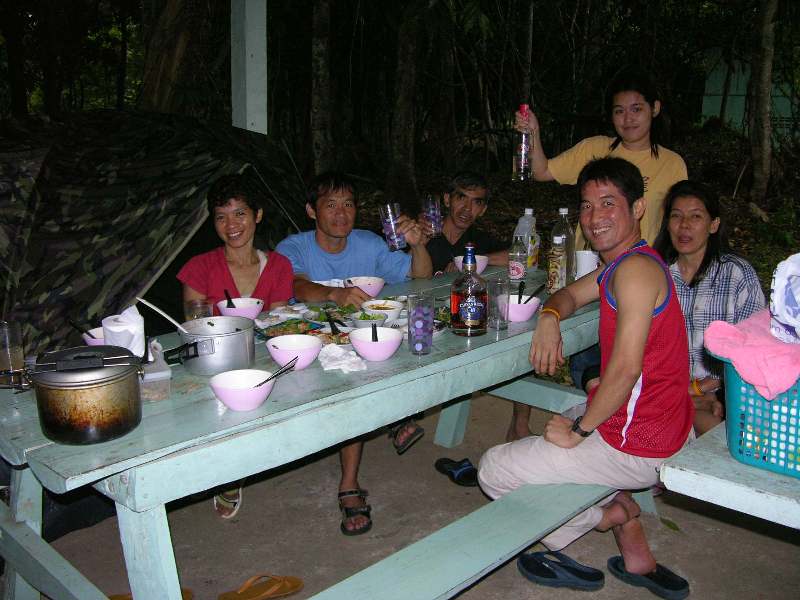 แล้วก็มาแค้มป็กันที่น้ำตกเขาสอยดาว ว่าจะนอนกลางสนามหญ้า แต่พระพิรุณมาเยี่ยมเสียก่อน เลยต้องนอนในโรงอาหาร