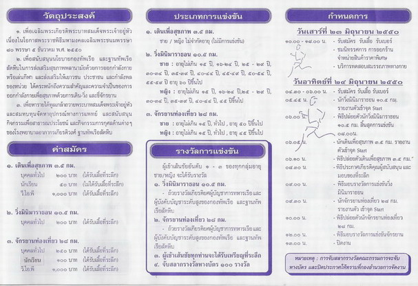 กิจกรรมประกอบด้วนการเดิน วิ่ง และจักรยานการกุศลเฉลิมพระเกียริ และสนับสนุนการออกกำลังกายเพื่อสุขภาพ
