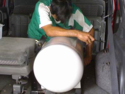 กำลังยึดถังครับทำเป็นกล่องยึดถังก่อนแล้วค่อยยึดกลับตัวรถอีกทียึดกับน๊อตเดิมของรถได้2รูครับ