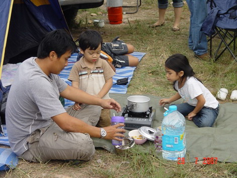 กางเต็นท์เสร็จก็เริ่มกิจกรรมตามหลักการ กองทัพเดินด้วยท้อง
