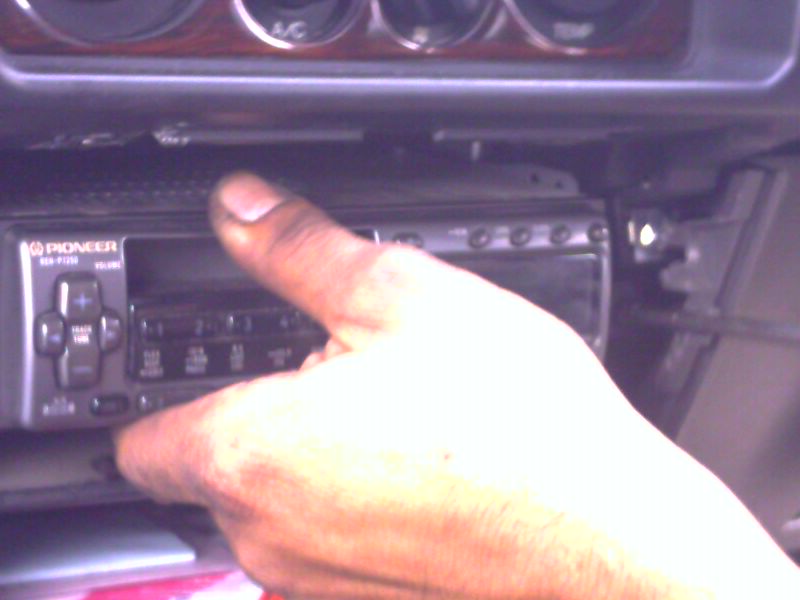 เมื่อวิทยุออกมาแล้วใช้มือล้วงเข้าไปปลดล๊อคสวิทซ์ แล้วดึงออกมาทางด้านหน้า