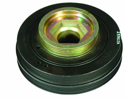 ต้องใช้แบบมียางครับ ถ้าใช้แบบเหล็กทั้งอันจะมีผลเสียในระยะยาวเกี่ยวกับชิ้นส่วนต่างๆ เช่น ข้อเหวี่ยง คอมแอร์ ปั้มเพาเวอร์ ปั้มน้ำ จะมีอายุในการใช้งานสั้นลงเพราะจะถูกกระชากโดยตรงจากรอบเครื่องในรอบสูง-ต่ำตลอดเวลา แต่ถ้าใช้แบบมียาง ยางจะเป็นตัวช่วยลดแรงกระชากได้มากทำให้ชิ้นส่วนดังที่ว่าทนทานขึ้น (ถ้าแบบไม่มียางใช้ได้ดี บริษัทรถยนต์ต่างๆก็คงไม่เสียเวลาผลิตแบบที่มียางมาใช้ในรถของเขาหรอก เพราะต้นทุนและการผลิตนั้นมันยุ่งยากและแพงกว่าแบบที่ไม่มียางมาก)