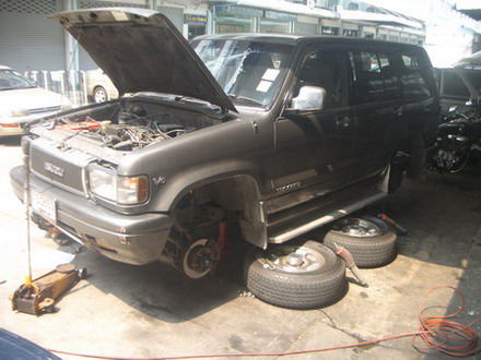 ได้เวลานำรถไปหาเฮียตุ้มครับ..นัดหมายวันอังคารที่ ๑๑ มี.ค. ..ตอนสายๆ...อาการคือรถกระแทกเวลาเจอหลุม กระด้างมาก.ทั้งหน้า-หลัง...เคยตั้งกระทู้ถามแล้ว..ให้ลองเช็คยาง ช่วงล่าง..เลยคิดว่าไปดูช่วงล่างก่อนดีกว่า...