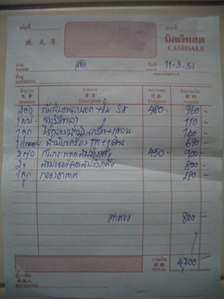 สรุปใบเสร็จตามรายการครับ..