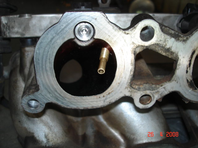 ก็มีสมาชิกบางท่านอยากทราบว่าเวลาผมเจาะหัวฉีดเจาะตรงไหน รูปนี้จะเห็นได้ว่าผมเจาะรูหัวฉีดบริเวณฐานของท่อร่วมไอดีเลยครับ จะอยู่ใกล้กับหัวฉีดน้ำมันเดิมครับ