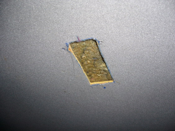 วัดขนาดให้ดีแล้วค่อย ๆ เอาคัตเตอร์ตัด (ระวังผงจากหลังคาเข้าตา)