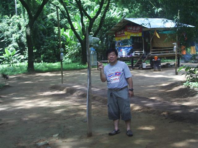 ที่ผมชี้เป็นโป๊ะไฟสนามที่พระท่านทำโดยเอาขวดน้ำห้าลิตรมาทำเป็นโป๊ะกันฝนข้างในเป็นเทียนจะให้แสงสว่างในตอนกลางคืน