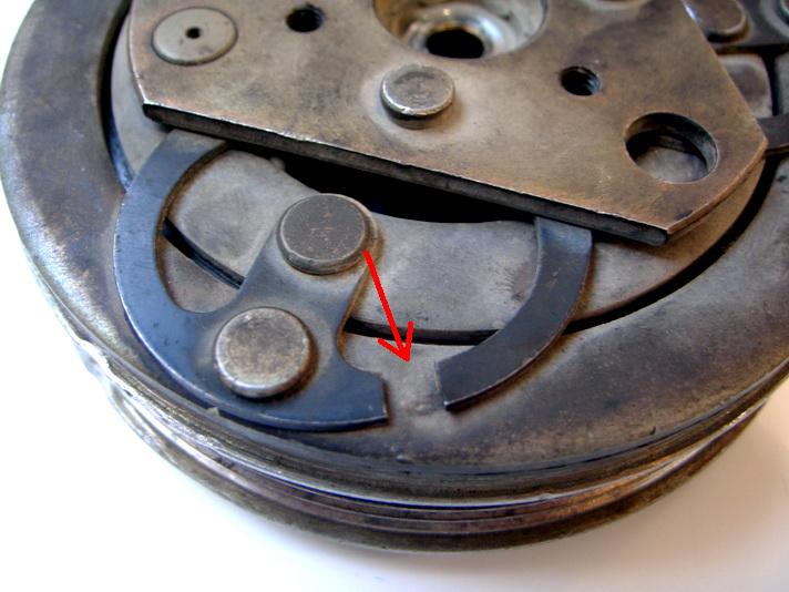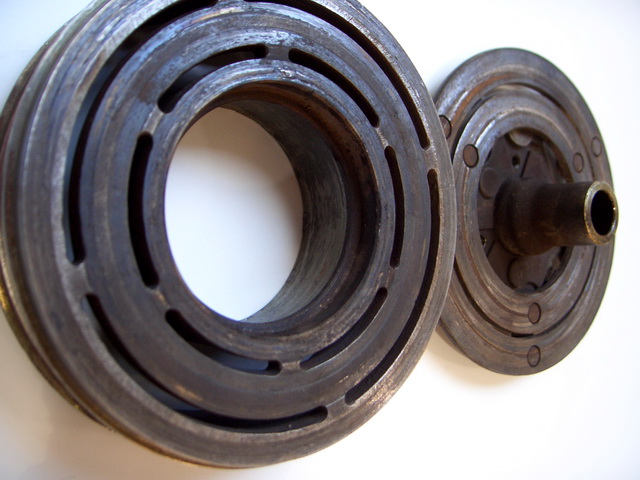 กระทั่งอยู่มาวันๆหนึ่งต้องไปธุระชุมพร.. แวะเข้าปั๊ม ได้ยินเสียงคลัทช์ตัดแอร์หน้าเครื่องเริ่มไม่เพราะ ตัดถี่แล้วดังแกร็กๆๆๆ บ่อย พอดับเครื่องจึงเห็นแผ่นสปริงหน้าคลัทช์แหว่งไปหนึ่งอัน