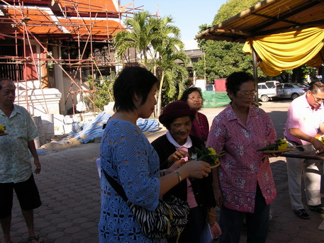 ชุดดอกไม้ ธูป เทียนจะมีจัดไว้ให้เรียบร้อย ค้าบำรุงพระธาตุสำหรับผู้โต ๔๐ และ ๒๐ สำหรับละอ่อ ที่เทียนจะมีกระด่าดหุ้มมา ไม่ได้เปิดดูเลยไม่ทราบว่าเป็นอะไร แต่เข้าใจว่าเป็นคาถาสำหรับวันเกิด