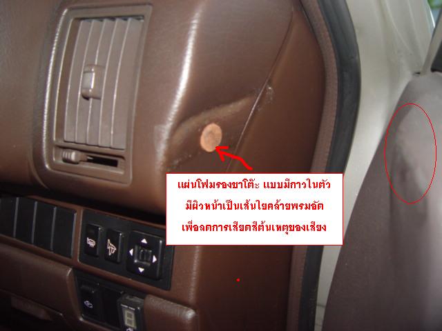 ช่วยคับช่วย ผมก็โรคจิตกับเสียงต่างๆเหมือนกัน เสียงที่ล๊อกประตูผมรำคาญมากก๊อกๆแก๊กๆ ผมใช้หลอดอ่ะคับ หลอดหลอดดูดน้ำ หรือท่อหด(ผมใช้ท่อหด)ก็ได้ ตัดให้ยาวซักห้าหกเซ็นต์ แล้วก็ยัดมันเลยคับ ยัดให้ปลายโผล่ต่ำกว่าปลายปุ่มล๊อกตอนล๊อก เท่านี้ก็สบายหูครับ ส่วนเบาะแถวสาม ถ้ายกขึ้นแล้วปรับสายห้อยให้ตึงแน่นดีแล้วยังดัง ลองขยับตัวพนักดูอ่ะครับ บางทีมันขยับได้แล้วดัง ผมใช้ร่มคับ เสียบไว้เลย เป็นทีเก็บร่มในตัว เอิ๊กๆ เงียบสนิทคับ แผงข้างไม่แน่ใจว่าอาการเหมือนกันรึเปล่านะครับ บางทีแผงข้างประตูด้านหน้าตอนบนๆด้านในเวลาปิดประตูแล้วมันไปสีกับคอนโซลตรงช่องแอร์ ผมใช้พวกแผ่นโฟมกาวทีเค้าไว้ใช้รองขาโต๊ะเก้าอี้อ่ะครับ ผมเลือกแบบที่มันเป็นผ้ารึกำมะหยี่ขนๆหน่อย ซื้อได้ที่โฮมโปรคับ ได้มาก็ลอกกาวออกแล้วแปะเข้ากับคอนโซลข้างๆตำแหน่งช่องแอร์ สังเกตุดูถ้าเป็นจากอาการนี้คอนโซลตรงส่วนนั้นจะมีร่องรอยการเสียดสีชัดเจนครับผม