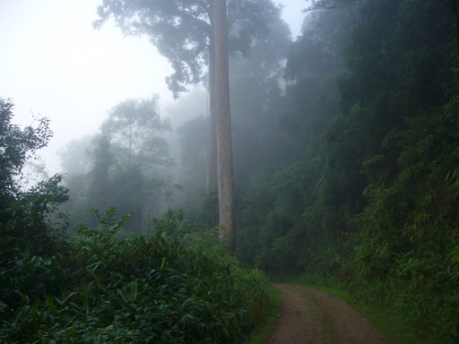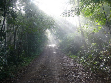 แสงแดดอ่อน ๆ ส่องผ่านหมอกบาง ๆ ตามเส้นทาง