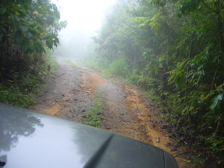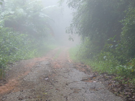 บรรยากาศเส้นทางในช่วงเช้าที่มีหมอกปกคลุมตามเส้นทางระหว่างขึ้นเขาพะเนินทุ่ง