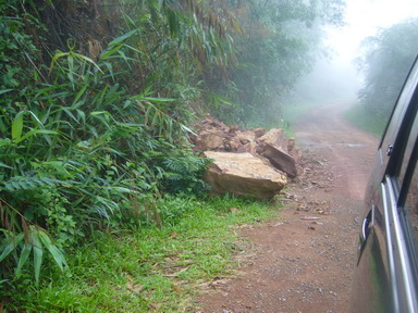 มีหินถล่มลงมาข้างทางนิดหน่อย