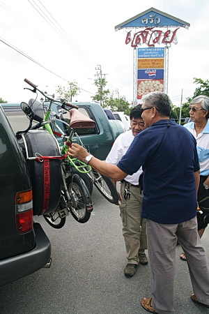 พี่โนกำลังอธิบายเรื่องที่วางจักรยานด้านหลังเกาะกับยางอะไหล่ด้านท้ายให้เพื่อนสมาชิกครับ