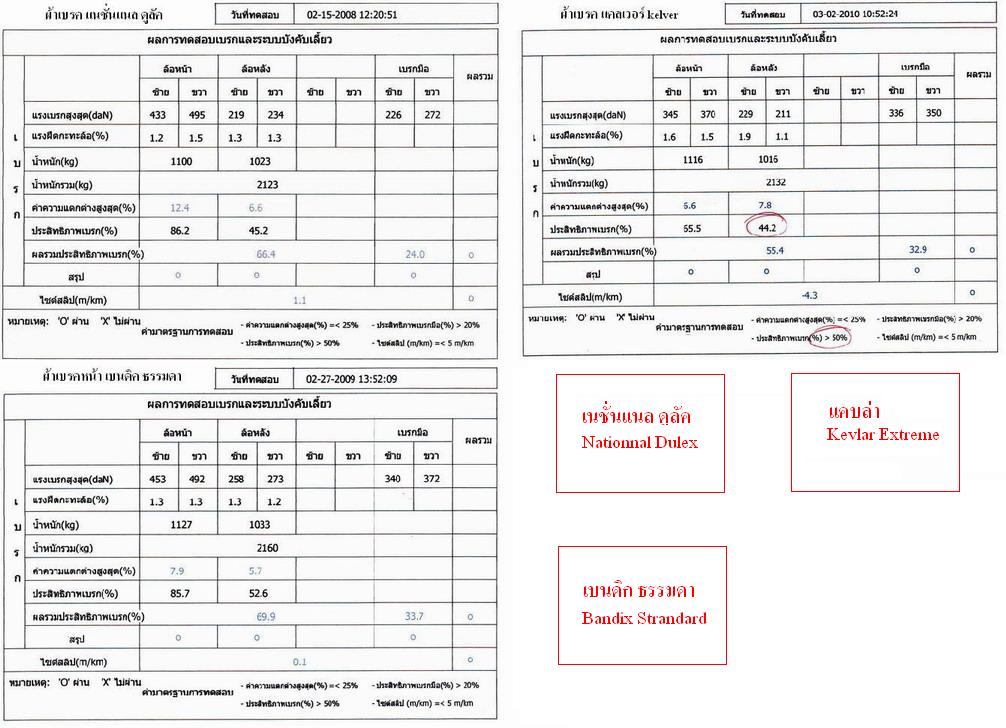 เอาภาพเปรียบเทียบ ตารางทดสอบเบรคของ ตรอ. ทั้ง3ยี่ห้อ 3 ปี มาให้ดู ค่ามันก็ต่างกัน