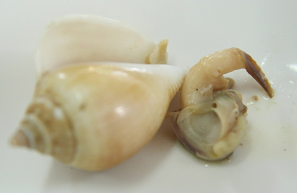 อันนี้ภาพตัวหอยชักตีนครับ การกินต้องดึงแกนแข็ง ๆ ที่ยื่นออกมาจากเปลือกหอยครับ แล้วตัวหอยจะออกมาให้ได้กินกัน