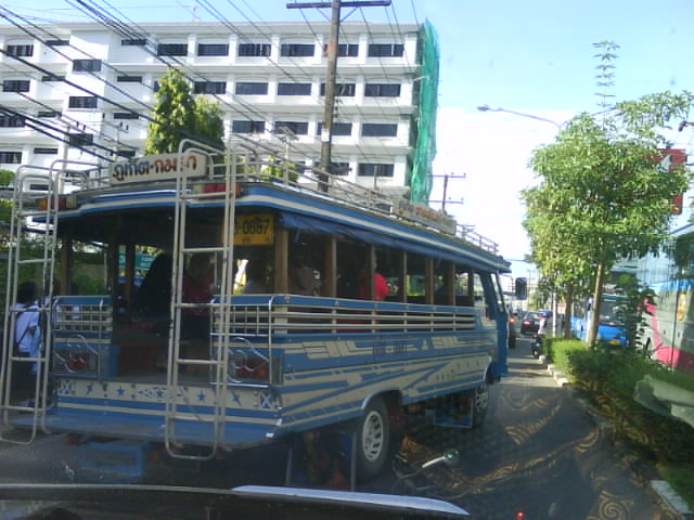 แต่รถโดยสาร โบราณมากเลย คล้ายกับที่สุโขทัยเลยครับ หลังคา ดอก กะบะ ไม้ทั้งนั้น