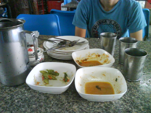ขอโทษ กินหมดแล้ว นึกขึ้นมาได้ ก็เลยเหลือแต่จานเปล่าๆๆ แต่ของจริงเกือบเต็มจาน อยู่ กทม บ้านเราก็อย่างน้อยกัยก็จานละ25 เป็นอย่างน้อยผมคิดว่า3จานก็75 ข้าวก็ 5บาท6จาน30รวมแล้วก็105บาท เด็กที่ร้านบอกว่าจายเย็นๆๆม่ายช่าย หกเสียบบาทเอง ถ้าไม่ติดว่ามีงานติดค้าง จะไปนอนที่พม่าสัก2คืน เหมือนกัน สาวพม่าสวยเหมือนกันนะครับ