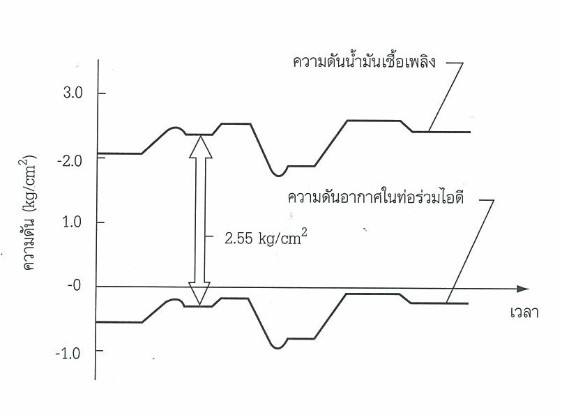 กราฟแสดงความสัมพันธ์ของความดันน้ำมันเชื้อเพลิง กับความดันอากาศ ในท่อไอดี ซึ่งจะรักษา ความดัน น้ำมันให้มีค่าความแตกต่างเท่ากันตลอดเวลา( Differential pressure)