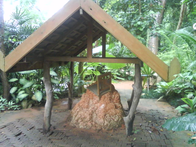 ตรงนี้ในอดีตเคยเป็นที่ท่านนั่งดูหนังสือ ก่อนนี้หลังคายังสูงอยู่ เก้าตั้งอยู่จอมปลวกก่อตัวขึ้น ดันเก้าอี้ขึ้นมาจนเห็นดังภาพ
