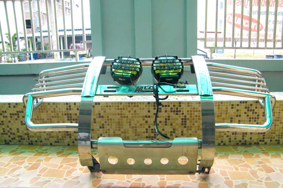 มีกันชนเสริมด้วยครับเป็นสแตนเลสมีไฟ2ดวงขนาด7 นิ้ว