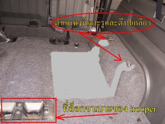 รูปนี้เป็นบริเวณห้องเก็บสำภาระของ BIGHORN(จากโรงงานจะไม่มีเบาะแถว 3)ผมคิดว่าทางโรงงานเขาไม่ได้เจาะรูมาให้หรอก แต่ลองจับๆ คลำๆ ดูก่อนก็ได้นะ เผื่อใต้พรมจะมีรู ถ้ามีรูก็โชคดีไปครับ