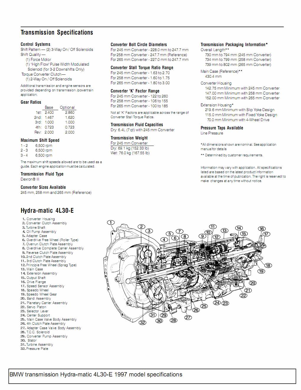 รุ่น 4L30-E ถือเป็นเกียร์แบบ Light duty คือสำหรับรถขนาดเล็ก ถ้าเป็น Medium duty จะเป็นรุ่น 4L60-E และรุ่น Heavy duty จะเป็นรุ่น 4L80-E สำหรับพวกคันโตๆ เช่น Hummer H1