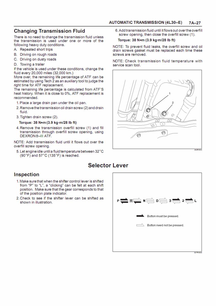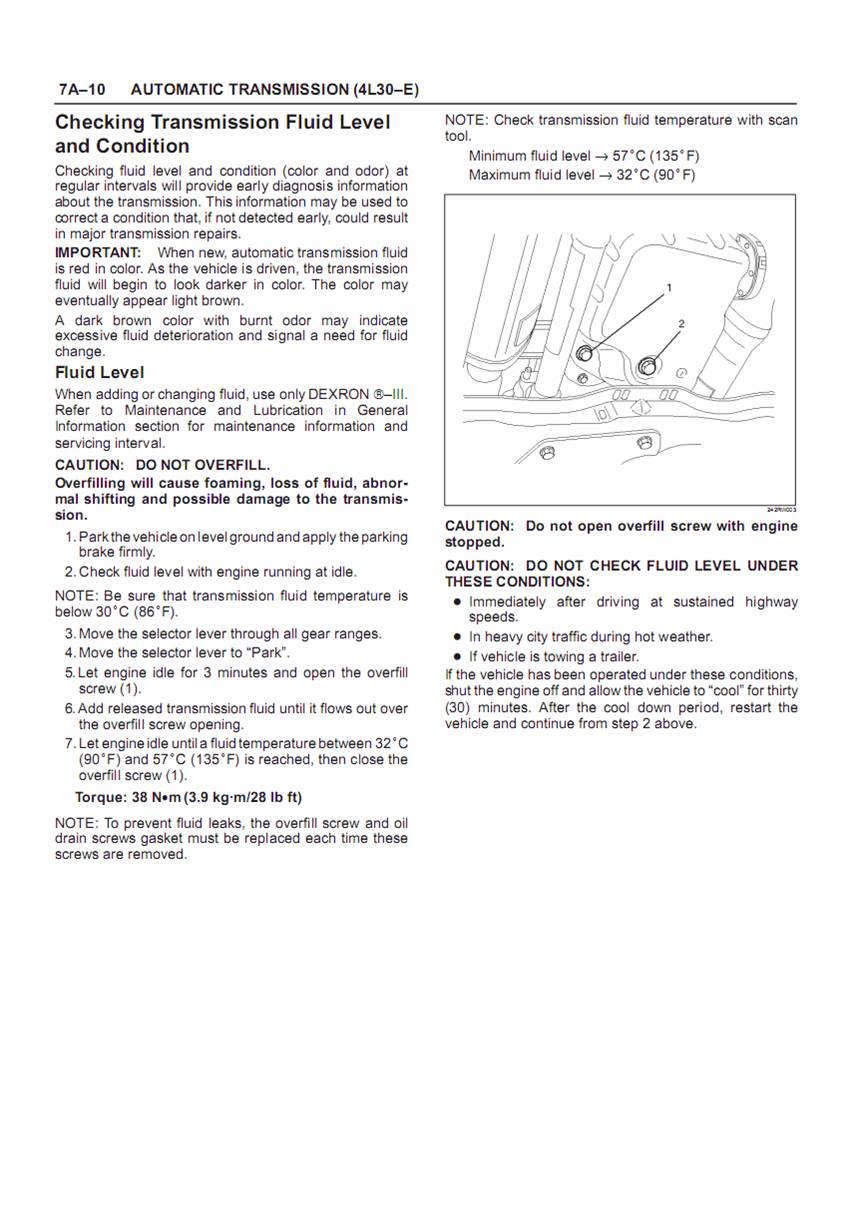 ตามคู่มือของเกียร์ จะกระทำการเติมน้ำมันเกียร์ โดยทำที่น้ำมันเกียร์อุณหภูมิต่ำกว่า 30C ให้เดินเครื่องรอบต่ำ โยกคันเกียร์ไปทุกตำแหน่ง ปล่อยให้เดินเครื่องประมาณ 3 นาที แล้วเปิดสกรู 0verfill เติมน้ำมันเกียร์จนไหลออกมา และปล่อยให้เครื่องเดินจนถึงอุณหภูมประมาณ 32-57C จึงปิดสกรู การปฏิบัติข้างต้นเป็นการตรวจในอู่ และหากใครมีเวลา จะทำตามขั้นตอนนี้ก็โอเค และในกรณีนี้ ถ้าหากเครื่องเพิ่งทำงานหนักมา ต้องจอดประมาณครึ่งชั่วโมง รอให้เครื่องเย็นจึงทำการตรวจสอบและเติม