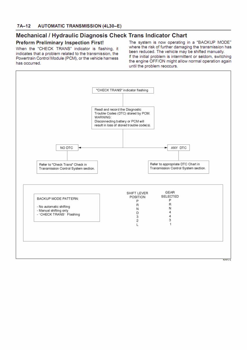 ในกรณีที่เกียร์มีปัญหาและไฟเตือนติดขึ้นมา เกียร์จะเข้าสู่ Backup mode เพื่อลดการสึกหรอและความเสียหาย โดยเกียร์จะทำงานที่เกียร์ 3 และ 4 เป็นหลัก ถ้าชิฟท์เกียร์แบบแมนนวล ก็จะทำงานที่เกียร์ 1-3-4 โดยไม่ทำงานที่เกียร์ 2 (ดูตามตาราง) เวลาที่เกียร์เข้าสู่ Backup Mode ก็พยายามทะนุทนอมหน่อย อย่าใจร้อนมาก และที่สำคัญรีบหาสาเหตุและซ่อมให้เร็วที่สุด อย่าวางใจ