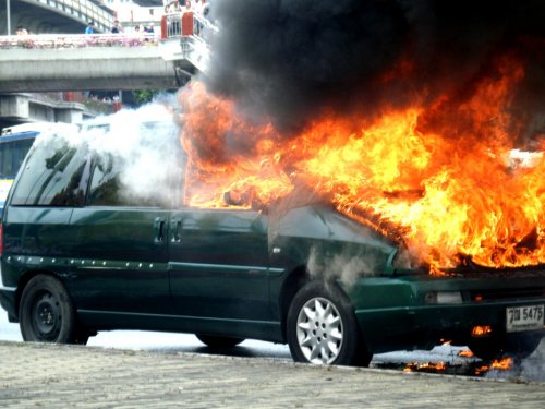 กทม.พบรถยนต์ยี่ห้อซีตรองแวน สีเขียว ทะเบียน 5475 กรุงเทพ ไฟลุกท่วมเกือบทั้งคัน โดยเฉพาะห้องเครื่องยนต์หน้ารถไฟพวยพุ่งกว่า 3 เมตร เจ้าหน้าที่ใช้น้ำและน้ำยาเคมีทำการดับใช้เวลาประมาณ 15 นาทีเพลิงจึงสงบ เบื้องต้นสอบนายปยุต รัตนาภรณ์ อายุ 27 ปี เจ้าขอรถ ทราบว่า นายปยุตเป็นผู้ขับรถคันไฟไหม้ โดยมารดานั่งเบาะข้างคนขับ เพื่อมำธุระย่านพญาไท มาถึงที่เกิดเหตุเกิดควันไฟออกมาจากช่องแอร์หน้าคอนโซลรถยนต์
