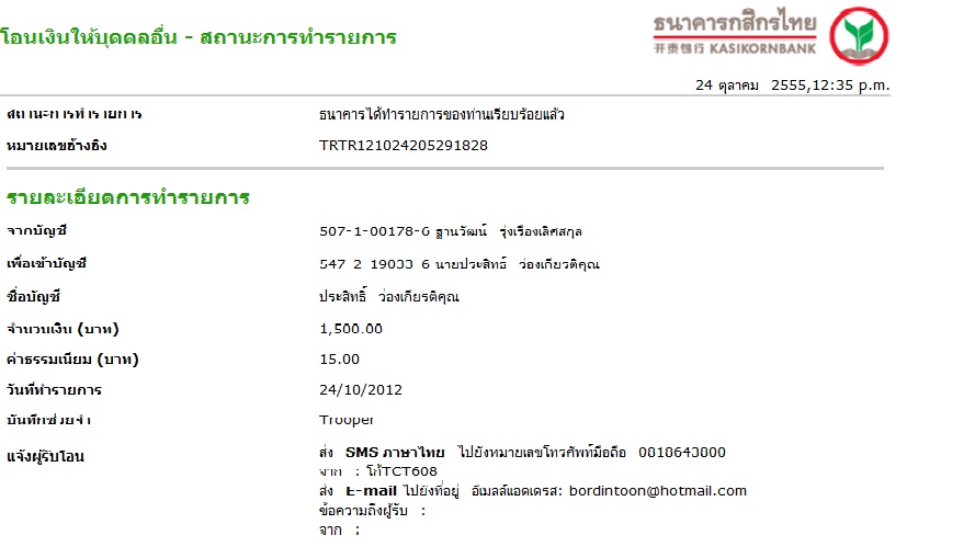 สมาชิกที่จะร่วม Meetting และสมาชิกที่จะพัก กรุณาแจ้งความจำนงค์ และโอนเงินเข้าบัญชีออมทรัพย์ ธ.กสิกรไทย สาขาอมตะซิติ้ เลขที่บัญชี 547-2-19033-6 ชื่อบัญชี นายประสิทธ์ ว่องเกียรติคุณ ภายในวันที่ 26 ต.ค. 2555 ด้วยครับ เพื่อจะได้แจ้งจำนวนคนและมัดจำค่าใช้จ่ายกับทางรีสอร์ทโดยด่วนครับ