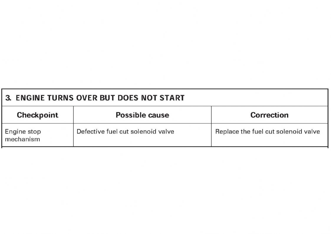 เหตุที่สตาร์ดตอนเครื่องเย็น หรือจอดทิ้งไว้นาน แล้วไม่ติด หรือติดยาก สาเหตุมาจากน้ำมันไหลย้อนกลับเข้าถังนำ้มันหมด ตอนที่กำลังสตาร์ดกว่าน้ำมันจะขึ้นมาต้องใช้เวลา
