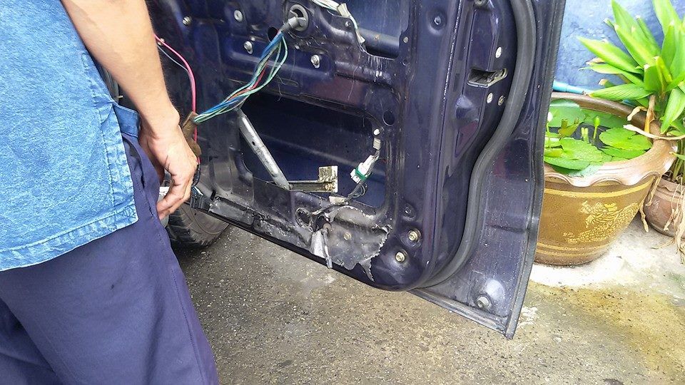 รื้อพลาสติกรองกระจกออก แล้วทำรางเหล็กใหม่