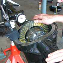 สิ่งที่ต้องทำหลังเปลี่ยน LSD คือ ปรับ-สอบ ระยะ Backlash บายศรี-เดือยหมู สุดท้าย print contact pattern เพื่อความแน่นอนอีกที ผมใช้สีโปสเตอร์ของลูกน่ะ ระยะ Blacklash ให้ใช้ตามสเป็คของรถ หากไม่ทราบ ทั่วไปผมปรับอยู่ที่ 0.2 -0.4 mm. โดย Dial indicator ตามรูปครับ