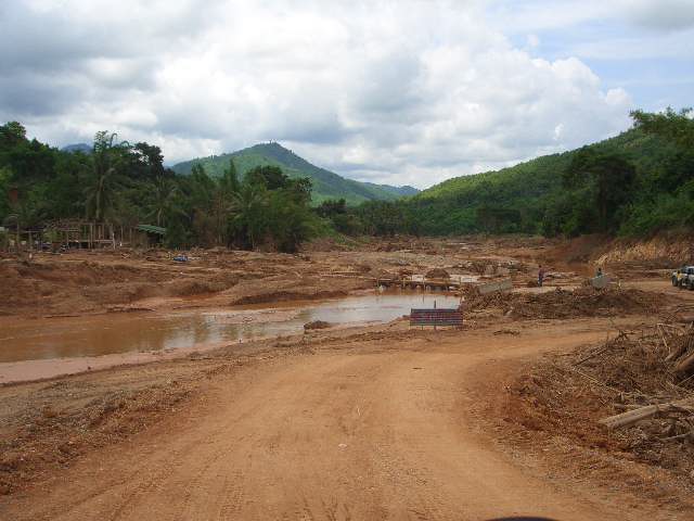 เมื่อสะพานปลิวหายต้องข้ามลำห้วยเดิมด้วยวิธีนี้.. บางช่วงต้องลุยลงน้ำครับ แต่ระดับลึกไม่มากประมาณครึ่งล้อ