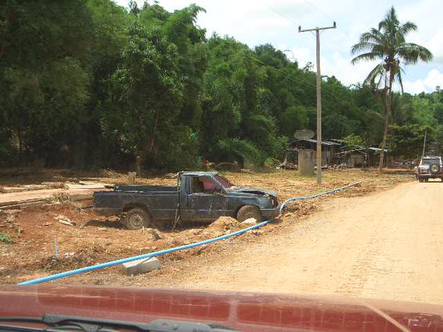 พอดีพรรคพวกกันซึ่งเป็นสมาชิกในกลุ่มไทยแลนด์ครุยเซอร์TLCได้ชักชวนเดินทางร่วมขบวน นำของไปให้ผู้ประสบความเดือดร้อนจากเหตุการณ์น้ำป่าพัด ดินถล่ม ที่จังหวัดอุตรดิตถ์ เมื่อสองสามสัปดาห์ที่ผ่านมา.. เลยนำทรูเปอร์ TCT117ไปร่วมกิจกรรมกับเค้าด้วย น่าเห็นใจและน่าสงสารมากกับผู้ประสบเหตุการณ์ครั้งนี้ มีทั้งที่สูญเสียและยังทำใจไม่ได้อีกมาก ขณะเดียวกันถนนหนทางซึ่งได้เคลียร์สิ่งต่างๆออกไปเรียบร้อยแล้ว..สามารถเข้าไปจนถึงหมู่บ้านในสุดของหุบเขาฝั่งน้ำต๊ะและน้ำลี่สะดวก แต่ต้องเป็นรถกระบะหรือรถขับเคลื่อน 4 ล้อจะดีกว่า เนื่องจากคอสะพาน(รวมทั้งเสาตอม่อ)ขาดปลิวหายไปเกือบทั้งหมด บางช่วงต้องลุยข้ามลำห้วยเดิมที่เดี๋ยวนี้ขยายกว้างยิ่งกว่าสนามฟุตบอล สภาพร่องรอบยับเยินสุดๆ มีคนหายและเสียชีวิตทุกหมู่บ้านที่มีน้ำและดินทลายจากภูเขา