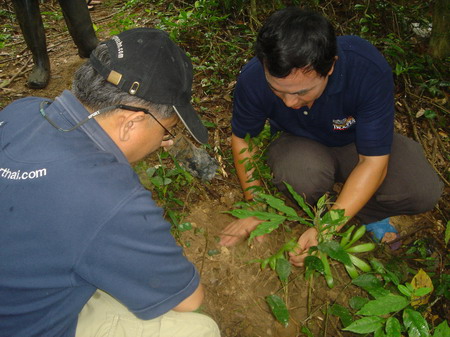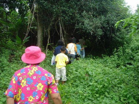 ทยอยเดินเข้าในป่า ด้านหลังที่ทำการเพื่อเข้าไปปลูกป่ากันครับ