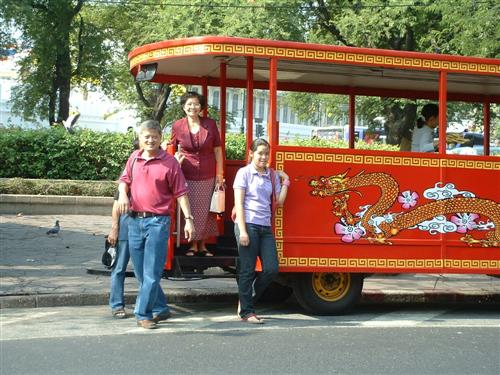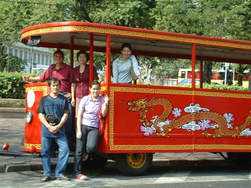 นัดกับโลมา-กระดี่ให้มารับที่บ้าน 9 โมงเช้า แล้วตรงไปสนามหลวง เห็นรถรางทาสีสะดุดตาตรงมุมทางเข้าวัดพระแก้ว เลยเข้าไปแอคท่า รถรางจะวิ่งบริเวณเกาะรัตนโกสินทร์ ใช้เวลาประมาณ 30-45 นาทีแล้วแต่สภาพจราจร ค่าตั๋ว 30 บาท