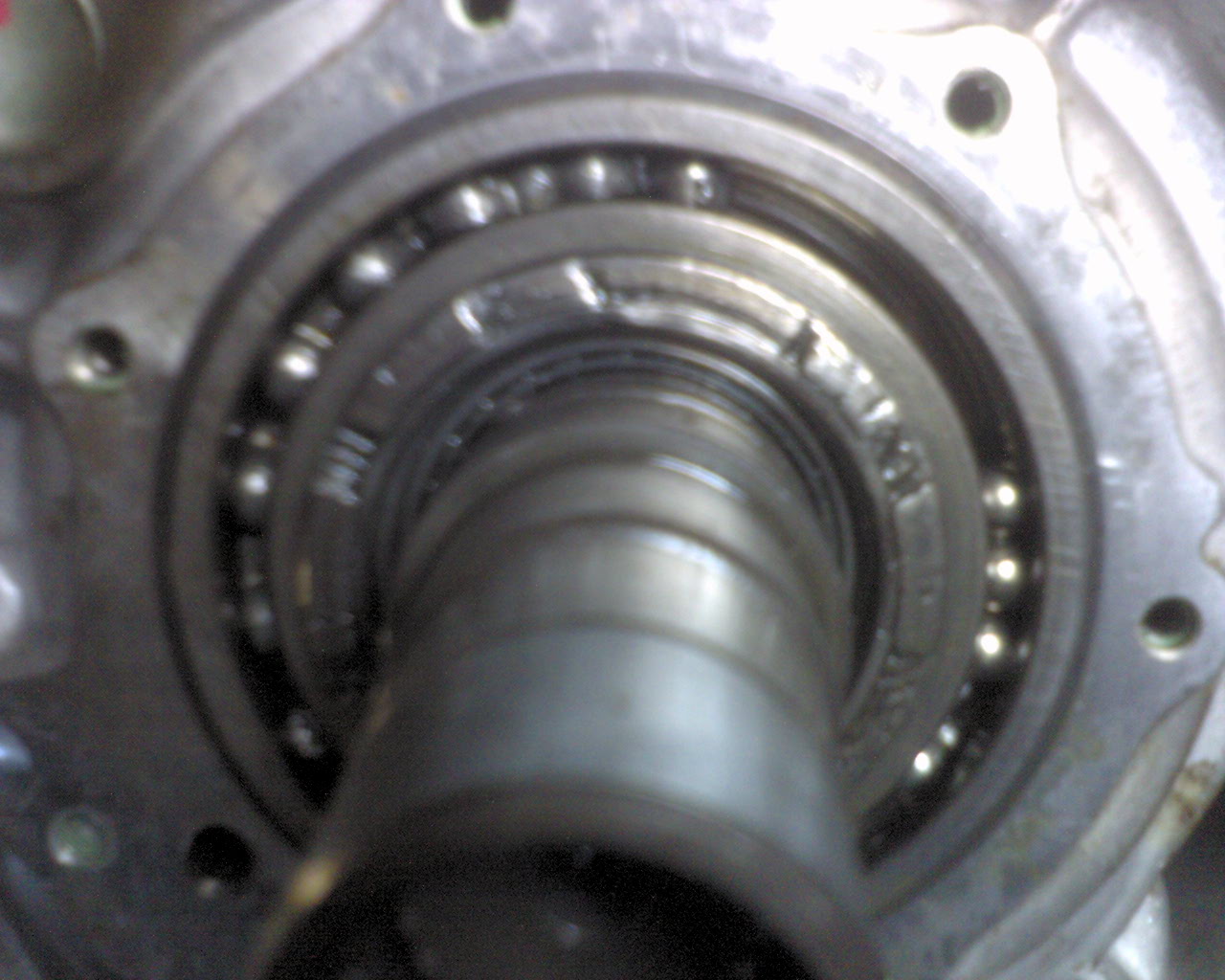 ลูกปืนหายไปเกือบครึ่งแถมบดเหล็กวงแหวนตัวที่สองซึ่งก็หนาเกือบ 5 มิลลิเมตร ไปจนเสียรูปใช้การไม่ได้เลยครับ