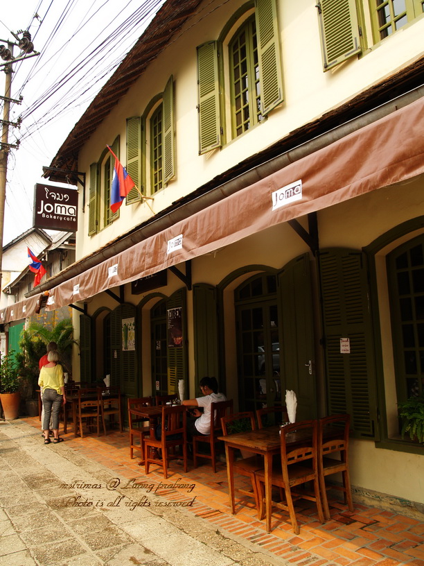 โจมา... ร้านกาแฟที่ผมโปรดปราน ร้านดังจากหลวงเมืองเวียงจันทน์ก็มีสาขาอยู่ที่หลวงพระบางด้วย เป็นร้านกาแฟขายดีสุด นักท่องเที่ยวทุกคนมักแวะมาที่นี่ แม้แต่ในโลนลี่พลาเน็ทยังต้องเขียนแนะนำ
