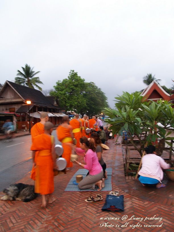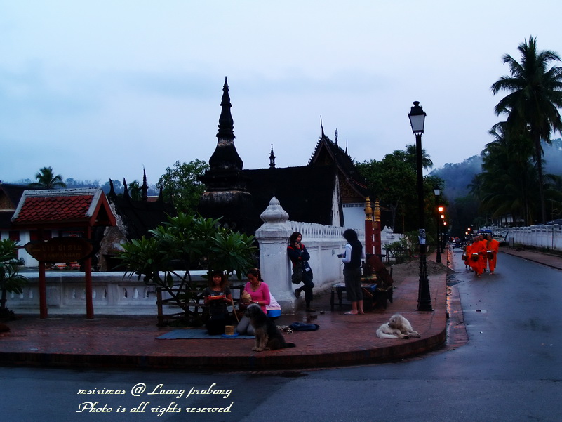 เช้า ๆ นักท่องเที่ยวและชาวบ้านมักจะมาใส่บาตรที่ย่านนี้ เห็นลิบ ๆ เลยไปหน่อยก็จะเป็นร้านรวงและบริษัทเกี่ยวกับการท่องเที่ยว คือประมาณว่าตรอกข้าวสารหลวงพระบาง ฝรั่งนั่งบรั๊นช์จนถึงดินเนอร์ยามดึก ก็ตรงนี้!!