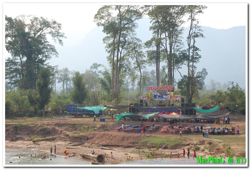หลังจารภารกิจความซนแล้ว เราก็เตินทางต่อ เราก็เห็นชาวลาวฉลองปีใหม่กันอย่างสนุก ส่วนมากจะฉลองกันริมแม่น้ำ