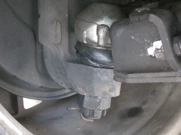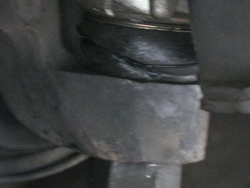 จากรูปจะเห็นยางรอบปีกนกล่างขาด ประมาณ 70 % ของเส้นรอบวง ตอนแรกก็คิดว่าไปโดนอะไรมาหรือเปล่า แต่พอดูดี ๆ ด้านชิดจานเบรคก็เป็น จึงน่าจะเป็นจากคุณภาพมากกว่า